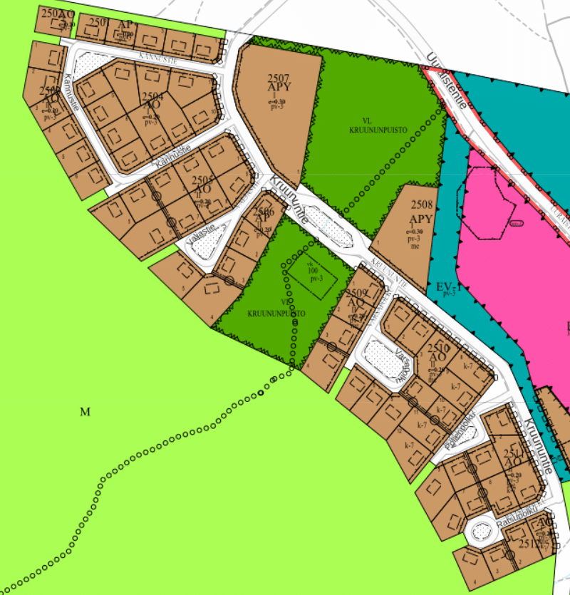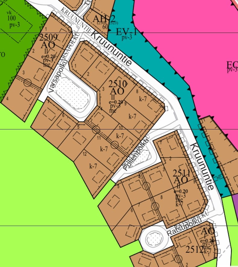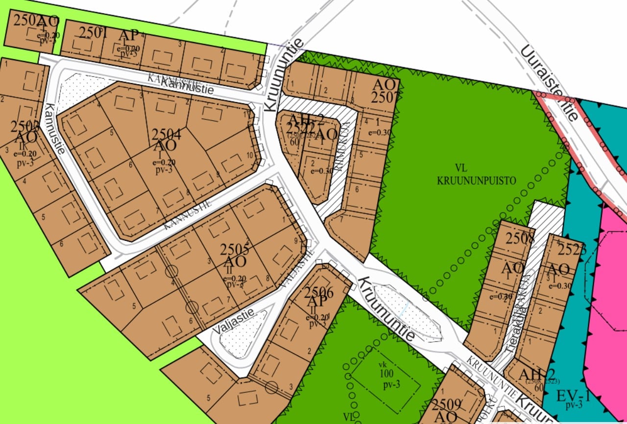 Kannustie kortteli 2501: ei vapaita tontteja.
